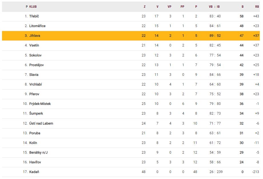 V utkání 23. kola se oba celky přímo utkají o druhé místo v soutěži. Litoměřice totiž mají 48 bodů, Dukla pouze o bod méně. Stadionu se povedl vstup do soutěže, když vyhrál deset z úvodních jedenácti zápasů a podlehl jen těsně na ledě Šumperku 3:4. Poté už byly výsledky Litoměřic jako na houpačce. Posuďte sami: tři porážky, dvě výhry a v posledních čtyřech zápasech střídavě prohra-vítězství-prohra-vítězství. K tomu je třeba připočíst i sobotní 22. kolo a kontumační výhru 5:0 proti Kadani, která odstoupila ze soutěže.
