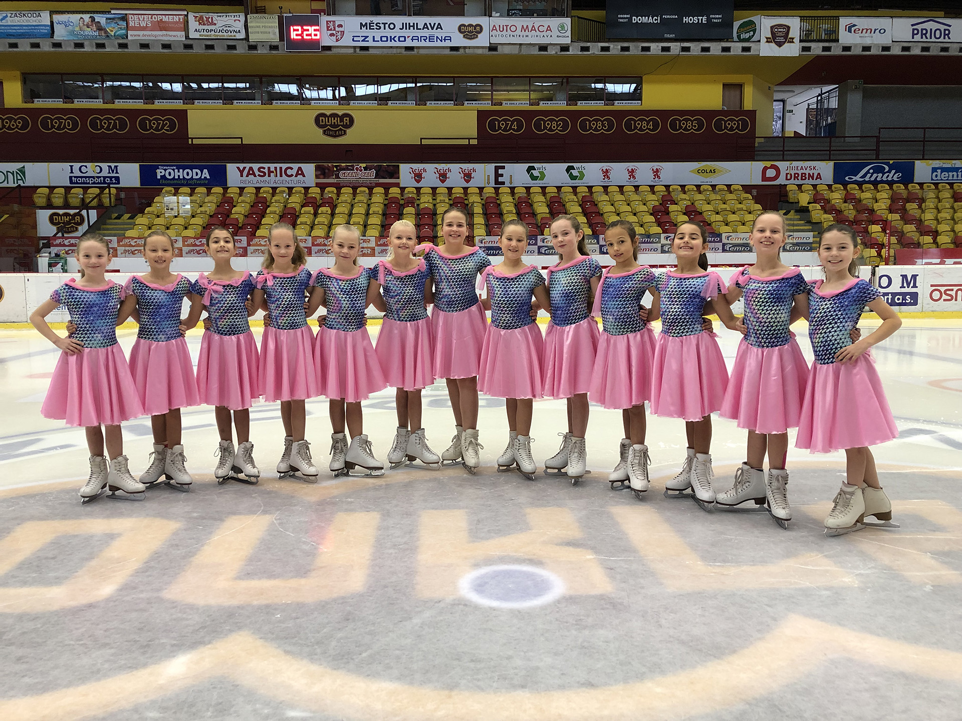 Sílící vlna koronavirové nákazy si vyžádala mimořádná opatření. Vinou covidu se na stadiony dostane pouze 1000 diváků, bohužel soutěže krasobruslařek se ruší úplně. Jihlavské žačky sportovní třídy 3.A, které trénují pod vedením trenérek Lindy Haferníkové a Johanky Tauschové, ještě letos nemohly soutěžit. Proto jim Dukla ráda umožní vystoupení o přestávkách během domácích zápasů. Již o první přestávce utkání Jihlava – Sokolov pojede tým Uno s vystoupením na hudbu Tři oříšky pro Popelku, což bude jejich letošní první volná jízda. Doufejme, že se letos představí s tímto vystoupením i na soutěžích. Zároveň tým zdraví paní učitelku Lenku Dzurikovou se vzkazem – máme jí moc rádi.