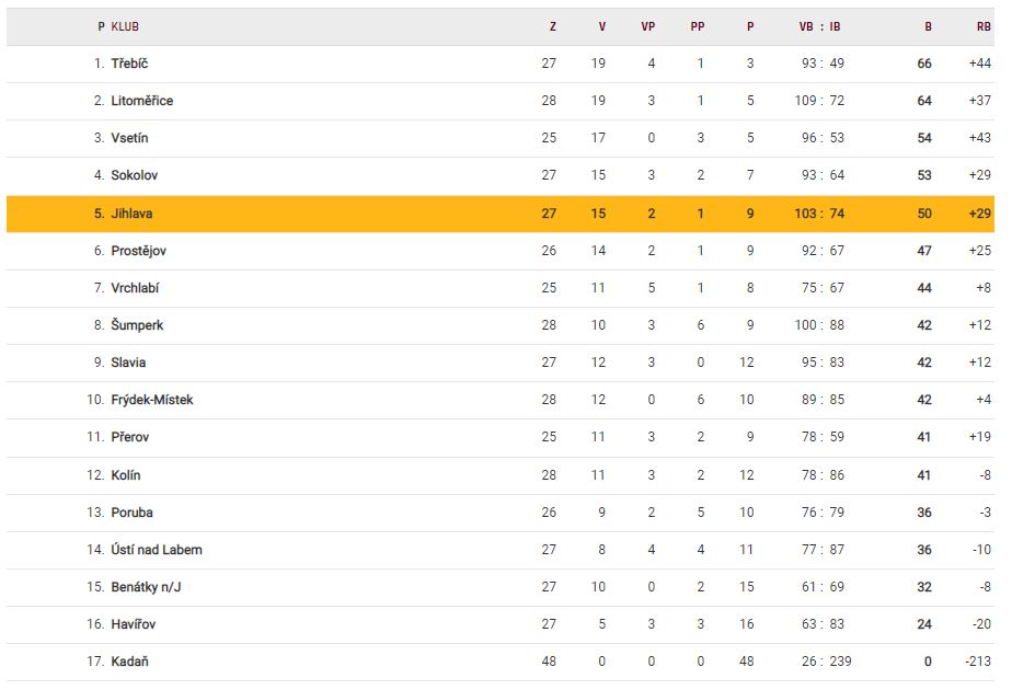 Utkání, ve kterém oba týmy potřebují získat tři body. Ale pokud nebude po základní hrací době remíza, tak si chvíle radosti užije pouze jeden tým. Jihlavští hokejisté se drží v první šestce, která znamená přímou účast ve čtvrtfinále, ale chtějí určitě více. Na třetí Vsetín momentálně ztrácí jen čtyři body. Ústí je na tom výrazně hůře, v probíhajícím ročníku bude bojovat o holé udržení Chance ligy. Případný sestup by byl pro klub, který ještě před desetiletím usiloval o nejvyšší soutěž, velkým problémem.