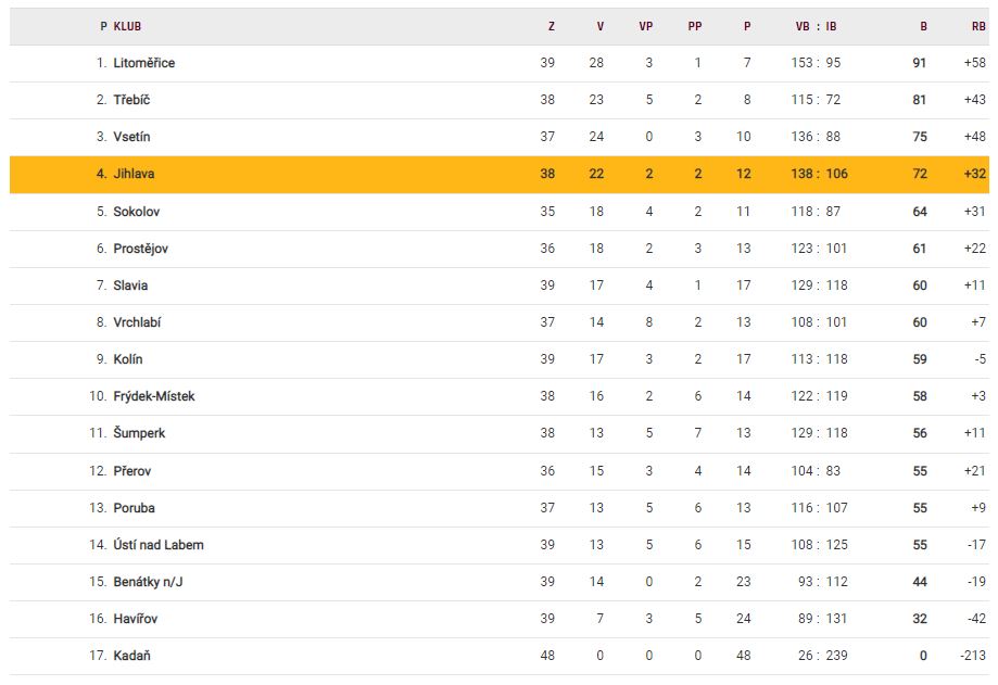 39. kolo, úterý 8.2.2022: SK Horácká Slavia Třebíč – SC Marimex Kolín (17:30)