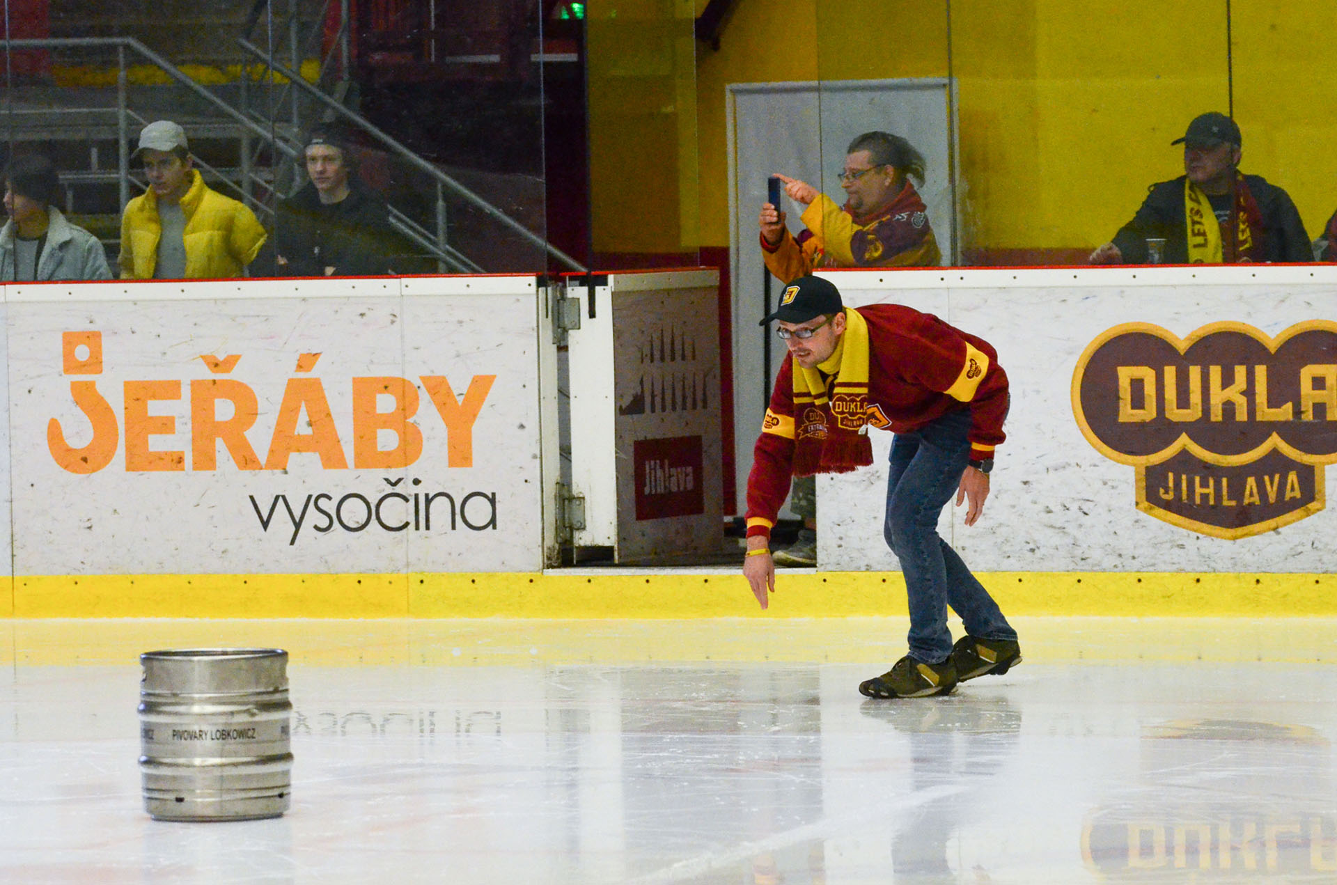 Během první přestávky obou finálových zápasů hodí do publika maskot Dukly ježek JD tři trička. Ti z Vás, kdo jej zachytí, nechť se dostaví na začátku druhé přestávky do prostoru trestných lavic k maskotovi – mohou si zasoutěžit v pivním curlingu. Z brankové čáry se trojice soutěžících bude snažit vrhnout malý prázdný sud co nejblíže ke středové čáře. Všichni soutěžící mají dva tréninkové pokusy a jeden ostrý vrh.
