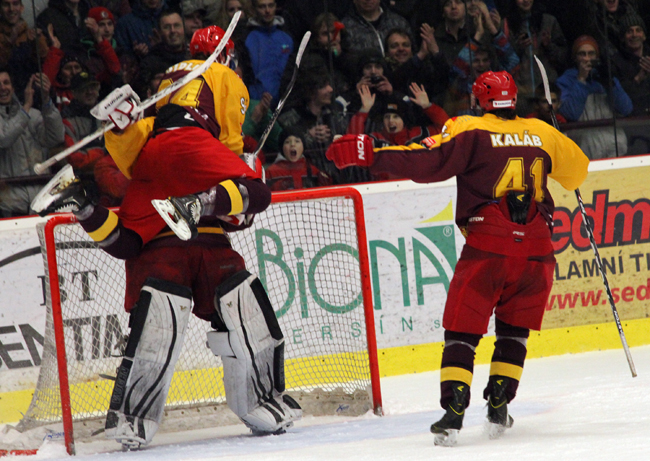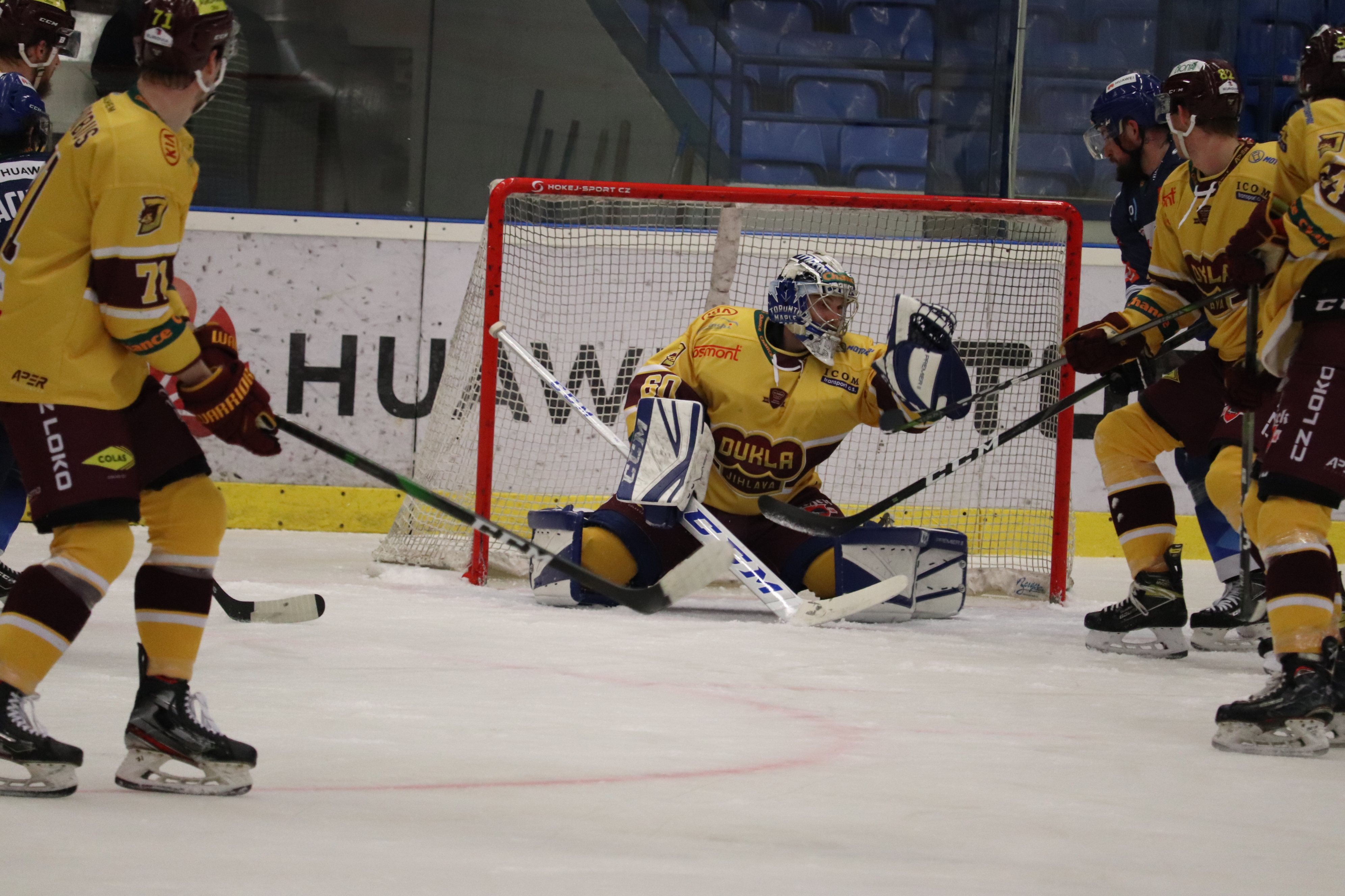 Základní část se sice jihlavským hokejistům proti Kladnu nevyvedla, ale jak se říká: konec dobrý, všechno dobré. První zápas v sezoně rozhodli Kladenští v posledních šesti minutách, kdy dali dvě branky a Dukla tak padla 1:3. Lépe nebylo červenožlutým ani na ledě soupeře, kde kvůli brance v 51. minutě zapsali těsnou porážku 1:2. Na třetí pokus už Dukla svého soupeře zdolala, v závěru o výhře 4:3 rozhodla přesná teč Tomáše Čachotského střely Jiřího Říhy. Na konec základní části padla Dukla 2:5 i kvůli tomu, že mariášem vyloučení sudího Wagnera dohrávala na pět beků.