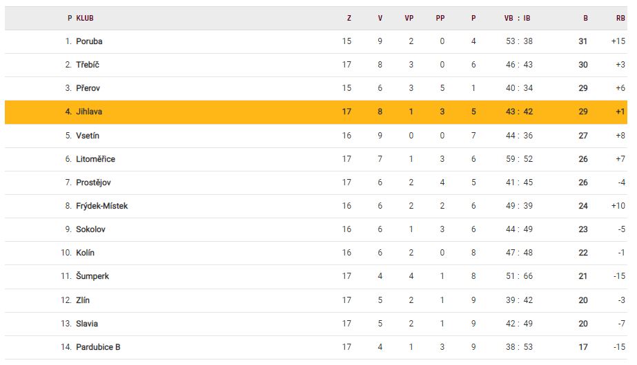 Po špatném začátku, kdy prostějovští získali pouze čtyři body z prvních pěti kol, přišla série čtyř výher v řadě, kterou Jestřábi načali vítězstvím v prodloužení proti Zlínu. Tu ale ukončili domácím debaklem 0:5 proti Litoměřicím. Napravit reputaci se Prostějovu povedlo na ledě Slavie při výhře 4:2, nicméně další tři utkání Prostějova vždy dospěly do remízy v základní hrací době a v prodloužení nebo na nájezdy už byl úspěšnější soupeř. Výkony jak na houpačce pokračují u Prostějovských i nadále. Po výhře 2:0 nad Kolínem přišla těsná porážka na ledě první Poruby a naposled výhra 2:1 v prodloužení nad B-týmem Pardubic. Sečteno a podtrženo, Prostějov doposud získal 26 bodů, je na sedmém místě a ztrácí tři body na čtvrtou Jihlavu. Tabulka je hodně vyrovnaná, o čemž svědčí i fakt, že rozdíl mezi sedmým Prostějovem a vedoucí Porubou je jen pětibodový.