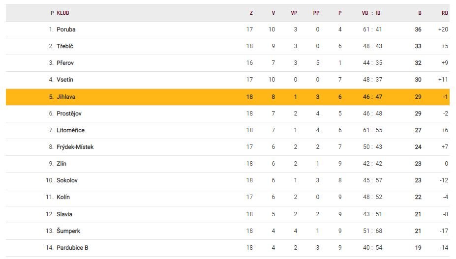 Tabulka Chance ligy po 18. kole