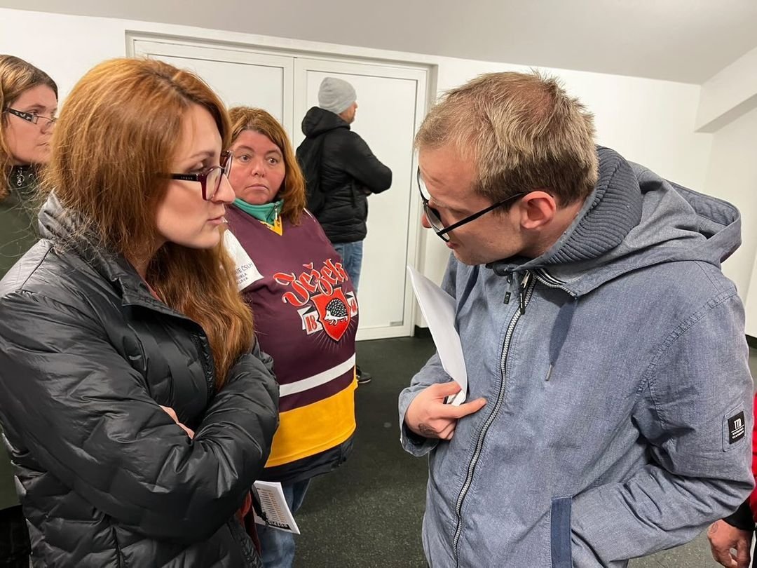 S klienty stacionáře si přišla popovídat i výkonná ředitelka klubu Tereza Ščerbanová. Foto zdroj: Domov Jeřabina Pelhřimov.