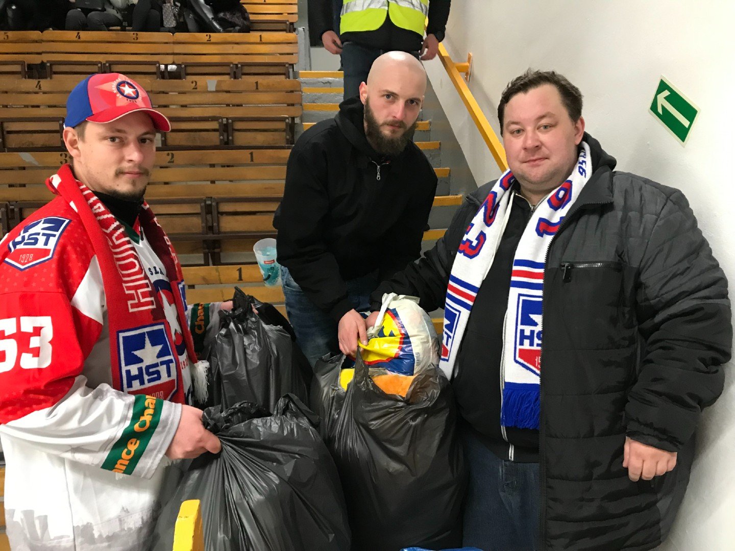 Plyšáky pro nemocnici v Třebíči odvezli do svého města fanoušci Horácké Slavie přímo po derby.