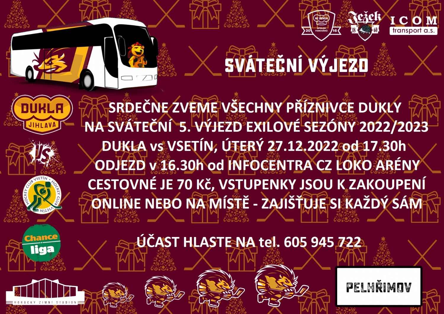 HC Dukla Jihlava – VHK ROBE Vsetín (Pelhřimov, 17:30) - vstupenky zde.