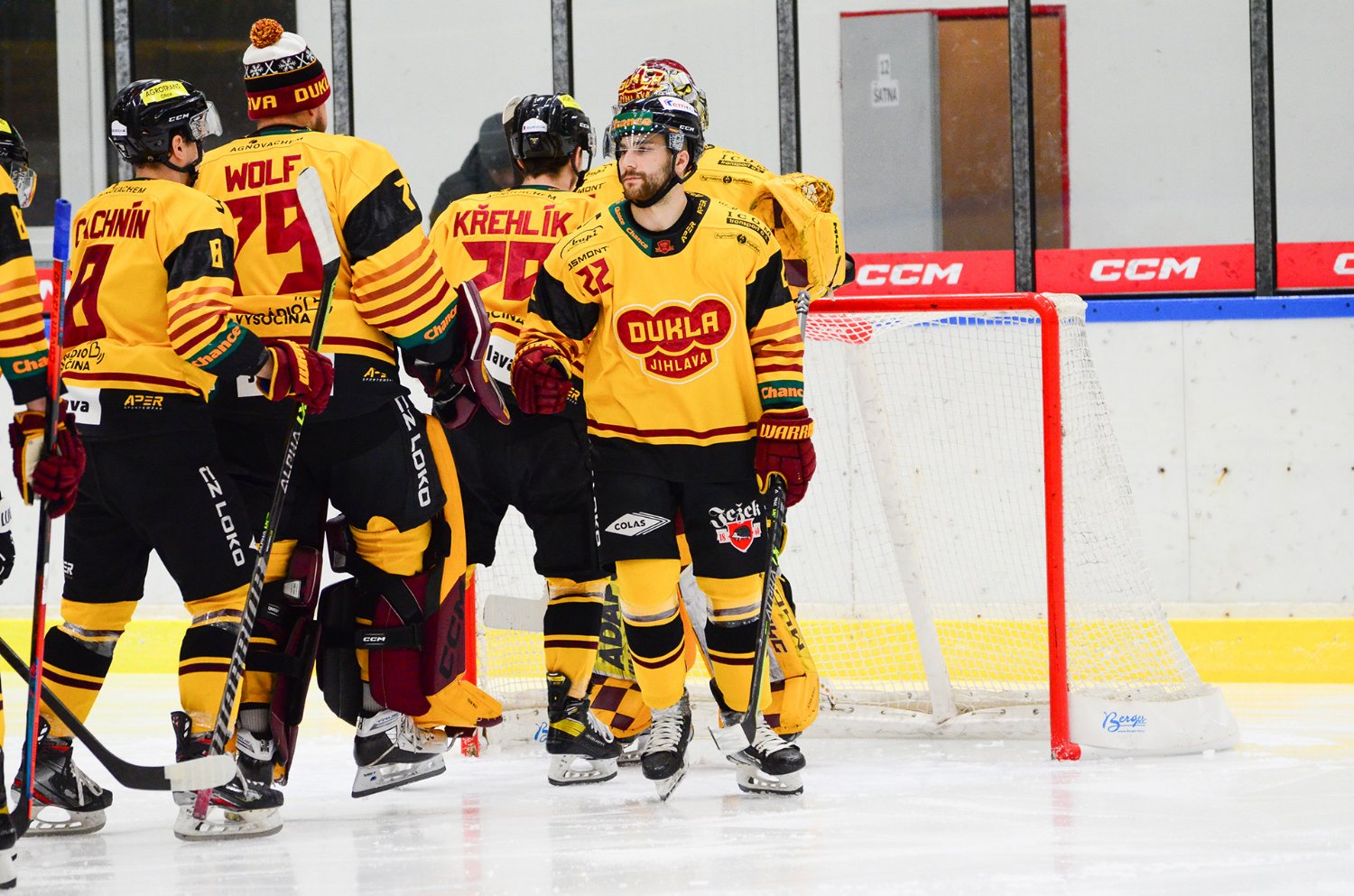 Dukla se Slavií zatím pokaždé bodovala, dvakrát vyhrála v základní hrací době a jednou venku padla po prodloužení. Případná tříbodová výhra může Jihlavu posunout až na šesté místo, to však nemá ve svých rukou. Foto: Nela Dittrichová.