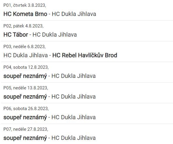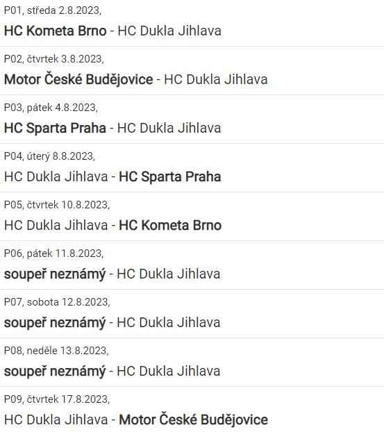 Deváťáci začnou přípravnou fázi třemi zápasy. Začátkem srpna se představí na ledě Komety Brno a hned o den později jedou do Tábora. Celý týden zakončí domácím duelem proti Havlíčkovu Brodu. Poté se zúčastní dvou turnajů. V polovině srpna je čeká dvoudenní klání v Mladé Boleslavi a na konci prázdnin budou hrát na turnaji pořádaný pražskou Slavií.