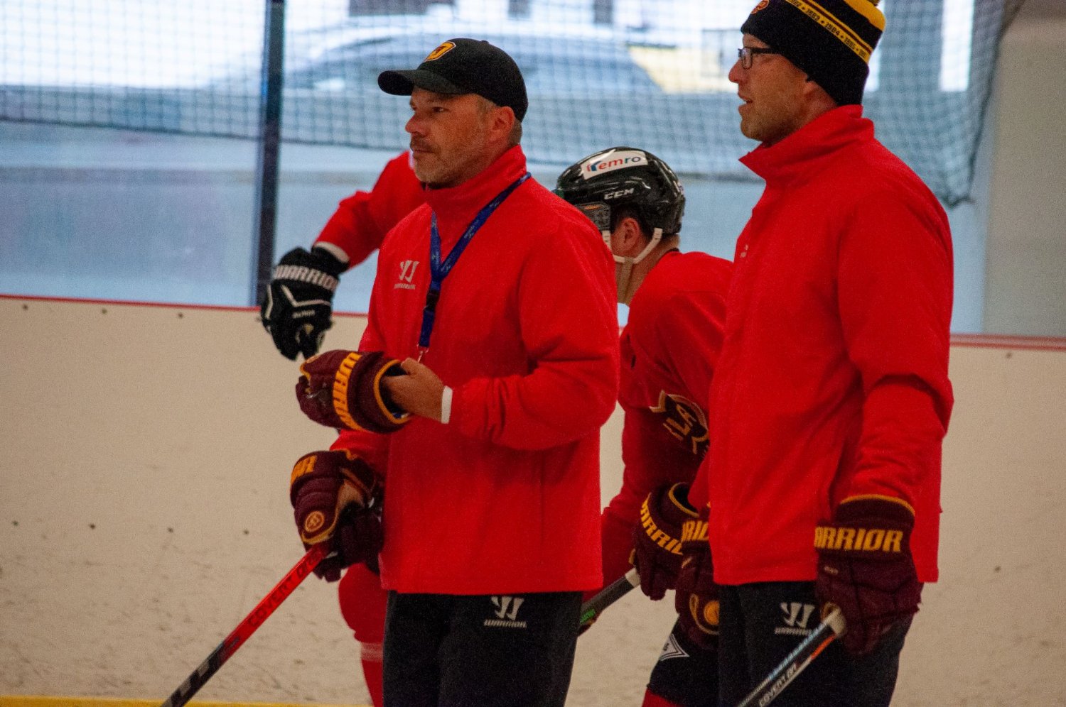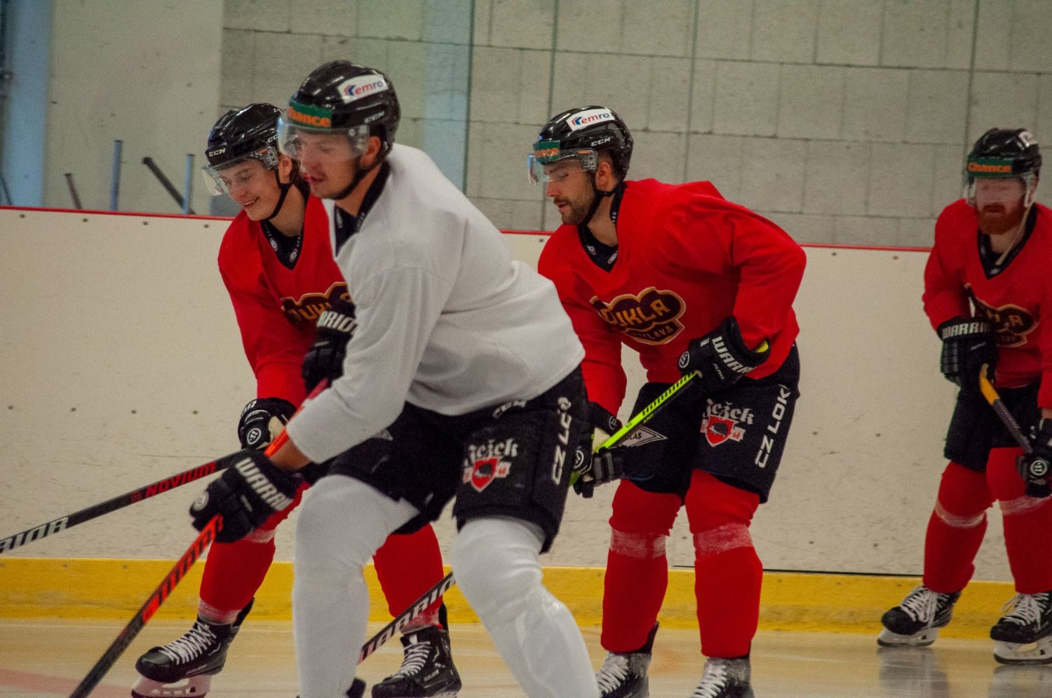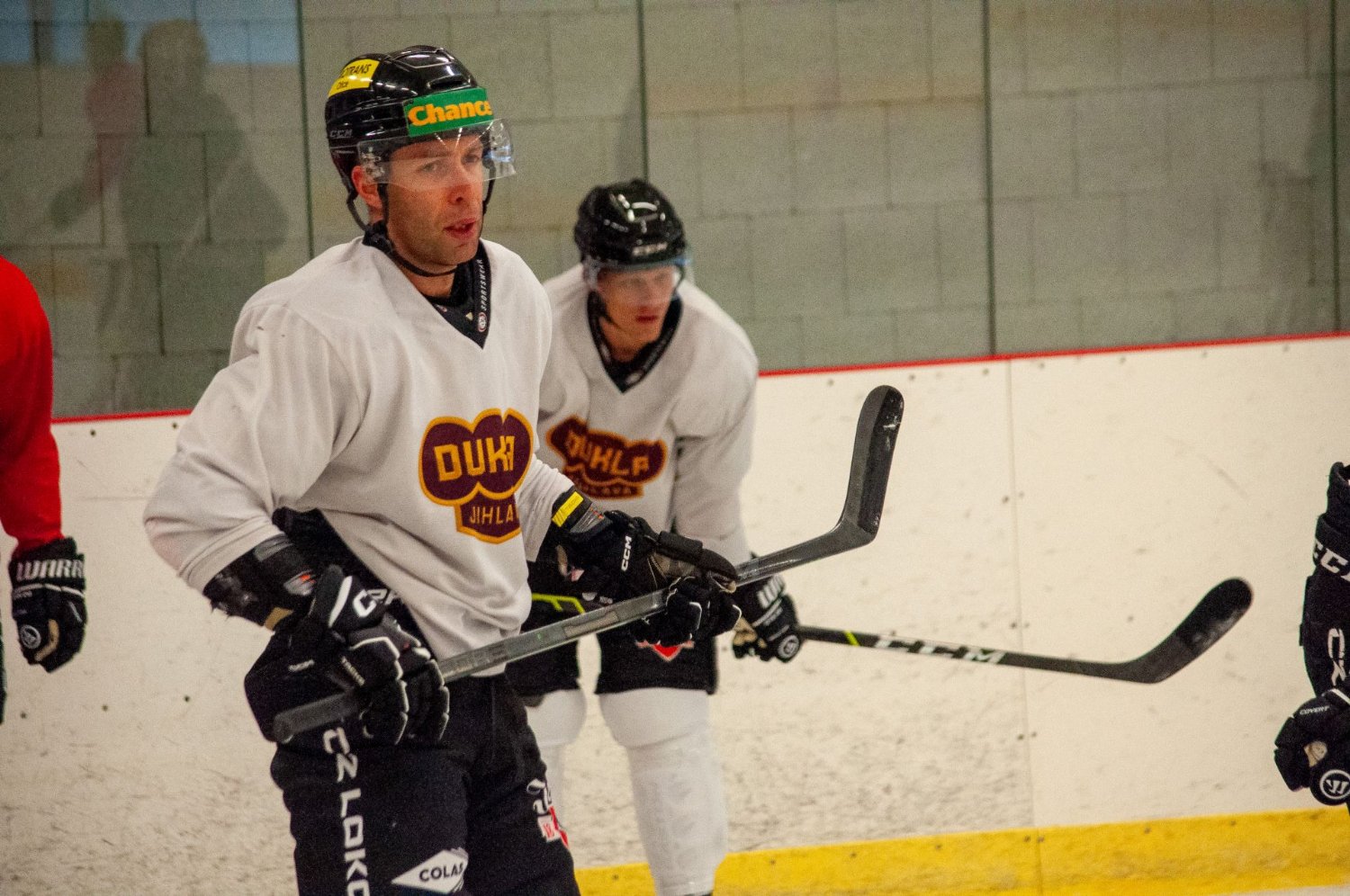 „Hráče čeká nějaké zapracování, aby si po té době zas ohmatali výstroj, trochu vytlačili brusle. Teď to nebude nic hrozného, ale samozřejmě si pro ně schováváme nějaké bruslení. Bude to kompletní blok, teď se zapracují, pak jdeme na led a pak ještě posilovna, takže to bude kompletní,“ nastínil program přípravy na nejbližší dny asistent trenéra Karel Nekvasil. Dobrou zprávou pro trenéry je, že hned na prvním tréninku měli k dispozici téměř celý tým. Poprvé s týmem trénoval i Samuel Krajč, nejnovější posila Dukly do útoku, kterou vám na webu brzy představíme. „Chybí akorát náš obránce Dvořák, který se zranil během suché letní přípravy, takže ten ještě není v pořádku, jinak jsme kompletní,“ dodal Nekvasil.