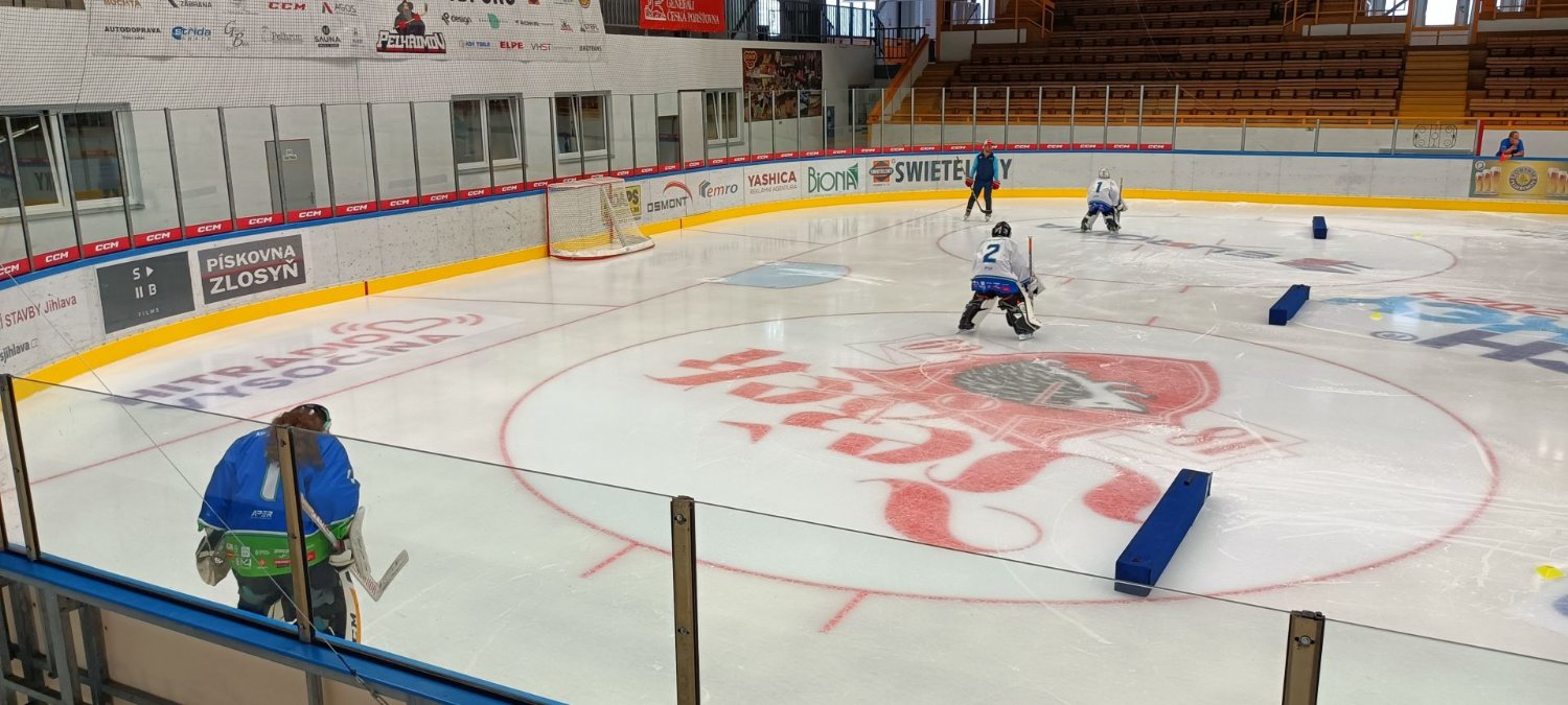 Brankáři se připravovali individuálně pod dohledem trenéra Daniela Šťastného.