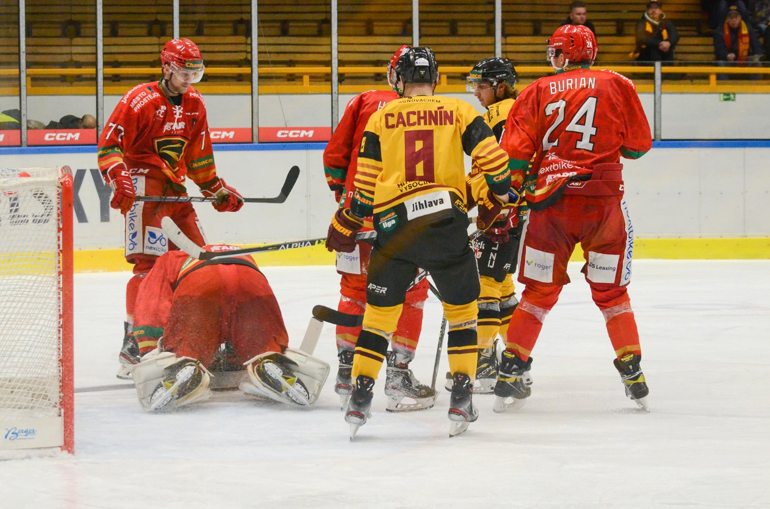 Branky a nahrávky: 23. Menšík (Miškář, Karabáček), 47. Skořepa (Havránek), 48. Chlubna (Cachnín, Haman) – 7. Poledna (Jandus, Jáchym), 29. Bartko (Illéš, Ostřížek), 34. Valenta (Ostřížek), 47. Poledna (Hašek, Burian), 58. Jandus, 60. Pěnčík (Hašek). Rozhodčí: Hucl, Květoň – Jindra, Maňák. Vyloučení: 2:4. Využití: 1:1. V oslabení: 0:0. Diváci: 455. Střely na branku: 33:23. Zblokované střely: 3:3. Vhazování: 29:34. Průběh utkání: 0:1, 1:1, 1:3, 2:3, 2:4, 3:4, 3:6.