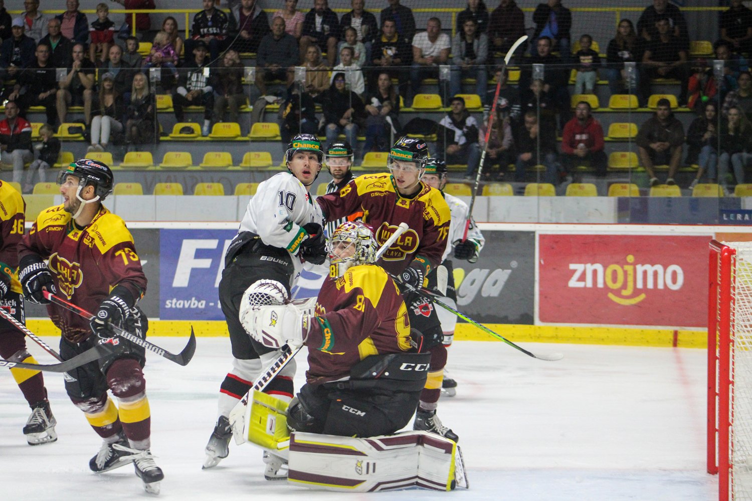 Hned první zápas nového ročníku Chance ligy nabídl zápas mezi Znojmem a Jihlavou. Dukla vstup do sezóny zvládla dobře a vyhrála 3:2. Foto: Barbora Stránská