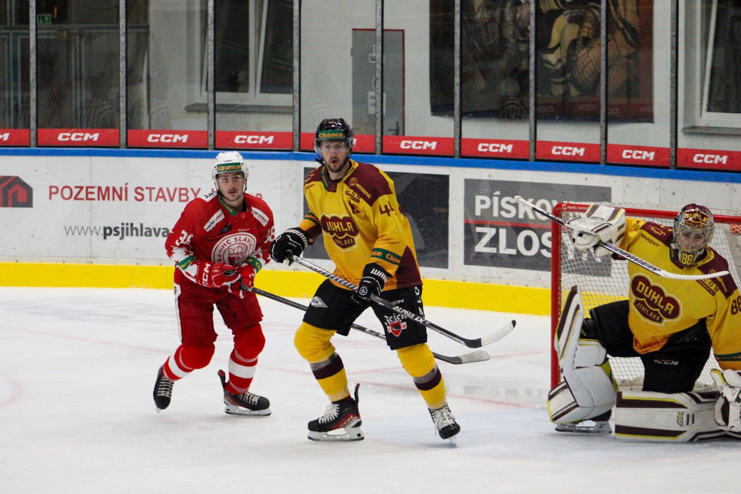 Přitom tým má Slavia – alespoň podle jmen – na rozhodně vyšší příčky. Stačí jmenovat některé zajímavé a zkušené hráče. Stačí jmenovat obránce Filipa Eliáše, Jana Holého, Davida Kajínka, Karla Klikorku, Dušana Žovince nebo poměrně slušnou útočnou vozbu v podání Matěje Berana, Tomáše Gumana, Filipa Helta (nyní zraněného), Tomáše Knotka, Jiřího Průžka či Tomáše Šmerhu. První jmenovaný je bratr jihlavského brankáře Adama Berana a mnozí z jihlavských fanoušků mu nemohou zapomenout urážku města Jihlavy v průběhu baráže o extraligu 2022. Matěje ale můžeme uklidnit, do onoho "města", jak Jihlavu posměšně nazval, nyní nebude muset, Dukla totiž bude hrát ještě sezonu a půl v Pelhřimově.