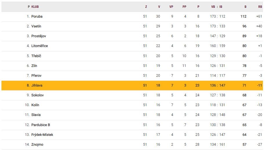 9. tým po základní části (Sokolov, Kolín, Slavia) – HC Dukla Jihlava