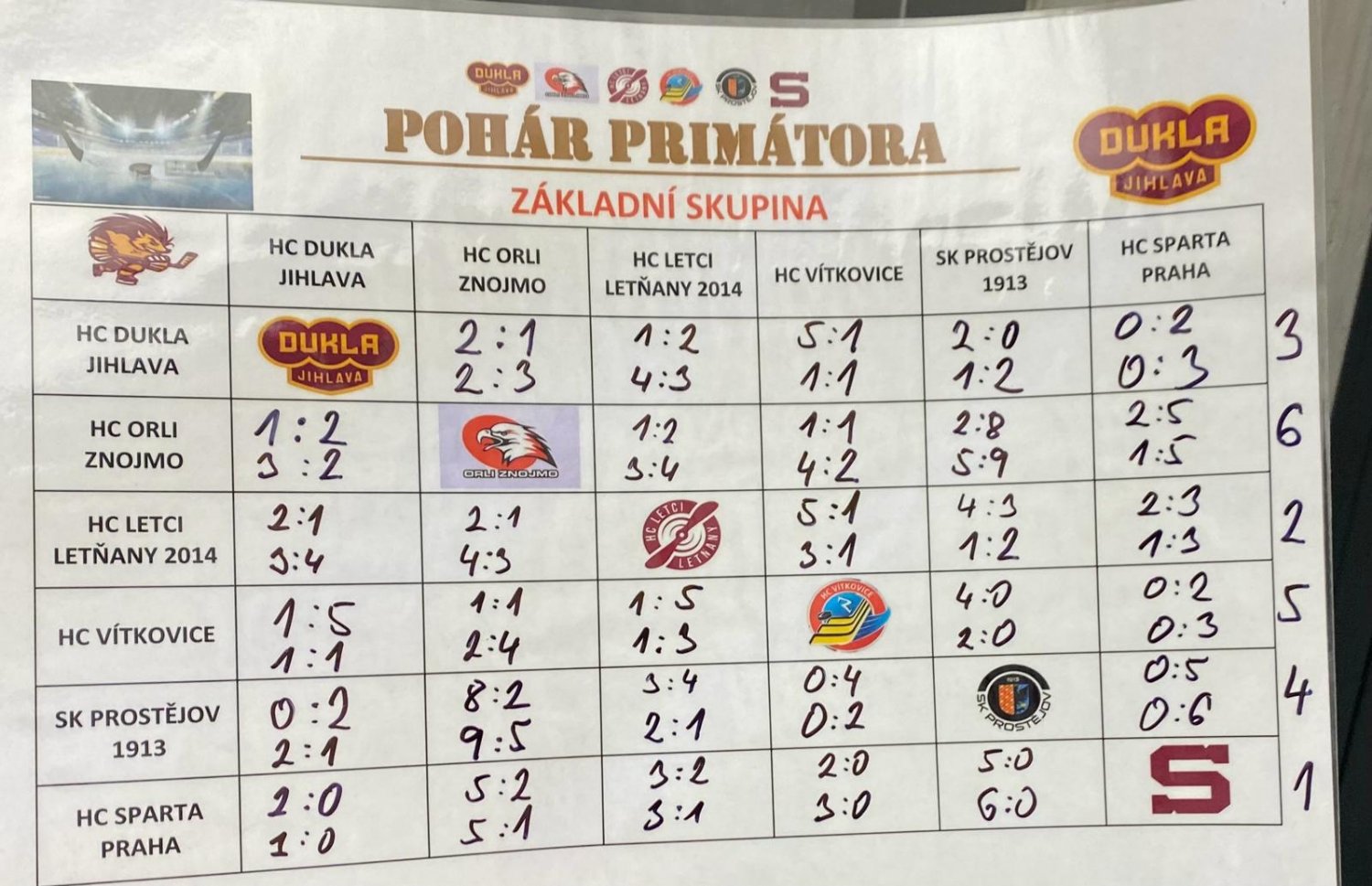 Výsledky Turnaje o pohár primátora Jihlavy.