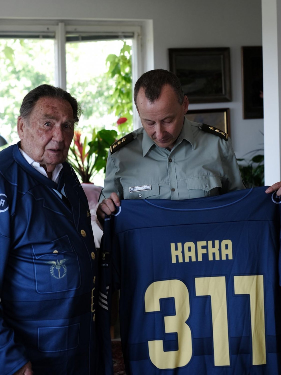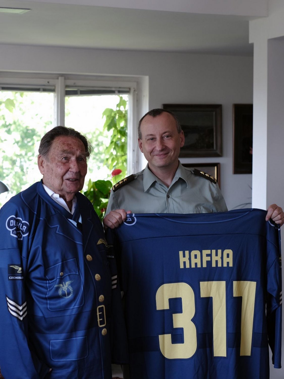 Jiří Pavel Kafka oslavil 100. narozeniny začátkem května 2024 a dres Dukly na motivy RAF se svým příjmením a číslem 311 převzal při soukromé rodinné oslavě. Toto číslo označuje jednu ze čtyř perutí československého letectva v rámci britského královského letectva RAF – přesněji 311. československá bombardovací peruť RAF. „Pan Kafka byl očividně potěšen a dres mu udělal obrovskou radost,“ říká Barbora Jeřábková z PR pro odbor válečných veteránů. Dres mu předával ředitel Odboru pro válečné veterány a válečné hroby plk. Robert Speychal v doprovodu prap. Františka Němce.