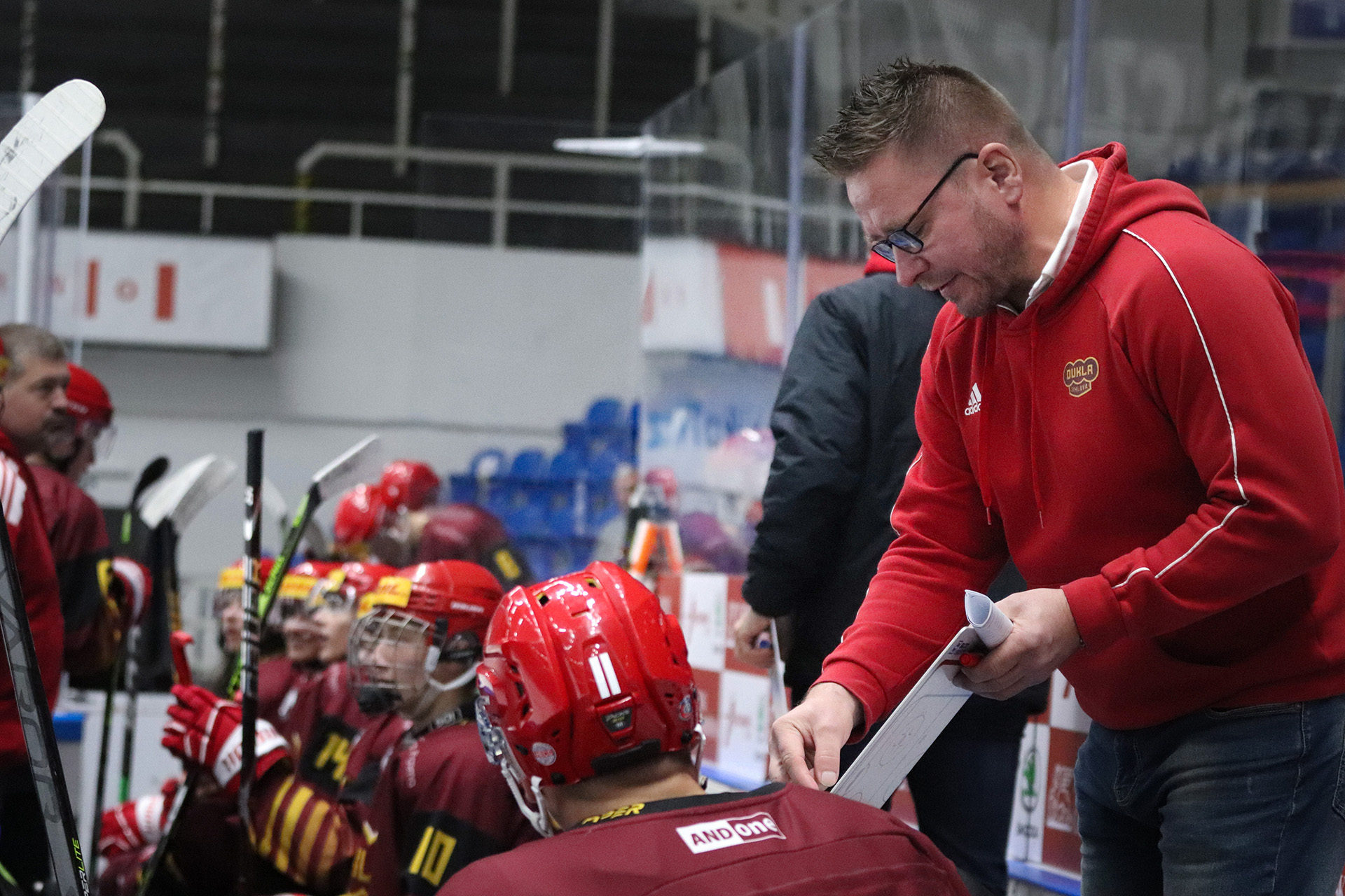 Jak už bylo zmíněno, jihlavští dorostenci budou hrát domácí zápasy na Veřejném sportovišti pro zimní sporty v ulici Tyršova, tzv. Zimáčku. Zázemí mají v podzemí pod ledovou plochou, kde dříve bývaly garáže. Vedle však už přes rok roste nová aréna, do které se všechny týmy Dukly jistě těší. „Je hezké, jak stadion roste, každým dnem to vidíme před očima. Je to povzbuzení po těch letech, kdy se nic nedělalo nebo když se nyní bouralo. Máme zázemí dole pod staďáčkem a nová aréna a je světlem na konci tunelu, že by se na ní v příštím roce mohlo začít a obrátit to k lepšímu,“ uzavírá rohovor Marian Morava.