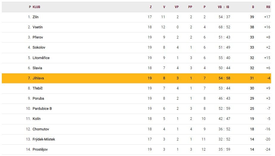 Tabulka Maxa ligy po 19. kole