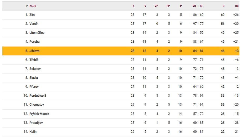Po loňské utrápené sezoně patří Slavia k příjemným překvapením aktuálního ročníku Maxa ligy. V průběhu této sezony dokonce okupovala místa v první čtyřce tabulky, což bylo ještě před druhým vzájemným zápasem, který Jihlava vyhrála 2:1 v nájezdech. Listopad ale nezastihl Pražany v úplně dobré formě. Z devíti utkání totiž prohráli hned sedmkrát, byť ve čtyřech případech rozdílem pouze jedné branky. Před reprezentační přestávkou přidali ještě jednu porážku, ovšem v posledních dvou zápasech zapsali šest bodů díky výhře 3:1 nad Přerovem a zejména velkému vítězství 4:1 nad Vsetínem. Slavii patří nyní 8. místo v maxaligovém pelotonu se 43 body a na pátou Jihlavu ztrácí 3 body.