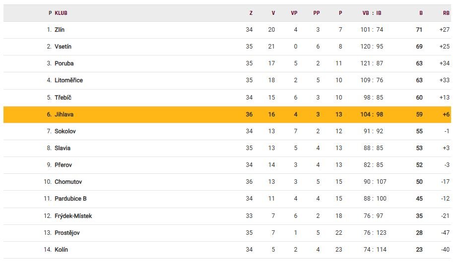 Poruba sice letos není tak dominantní, jako v předchozí sezoně, přesto se jí v posledních kolech daří. Z posledních deseti zápasů hned osm vyhrála a pouze dvakrát odcházela bez bodů. Ve dvou případech dokonce nadělila svým soupeřům desítku, konkrétně doma Prostějovu a Chomutovu. Ze začátku roku pak šokovala tehdejšího lídra tabulky ze Zlína, který si odvážel domů sedmigólový příděl.