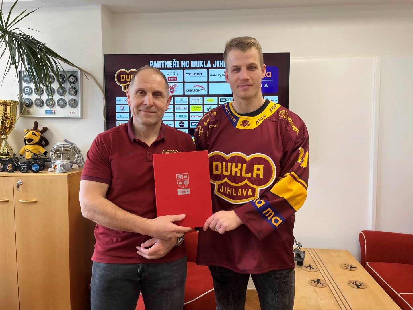 Obránce Filipa Dundáčka jistě není třeba fanouškům Dukly dlouze představovat. Odchovanec Havlíčkova Brodu přišel do Dukly ještě jako junior a už v sezoně 2014/15 poprvé dostal šanci v A-týmu Jihlavy. Po postupu Dukly do extraligy v roce 2016/17 přestoupil do Vsetína, krátce poté působil i v Porubě a v Nových Zámcích na Slovensku. Od sezony 2020/21 až doteď znovu působí v Jihlavě. V červenožlutém dresu aktuálně hraje už osmou, pokud připočteme i působení v juniorce a ve starším dorostu, tak už dokonce desátou sezonu. Za A-tým Dukly odehrál už přes dvě stě soutěžních zápasů a dvakrát v Jihlavě oslavil titul prvoligového mužstva, jako hráč zažil i postupové oslavy v 11. kole extraligové baráže v roce 2017.
