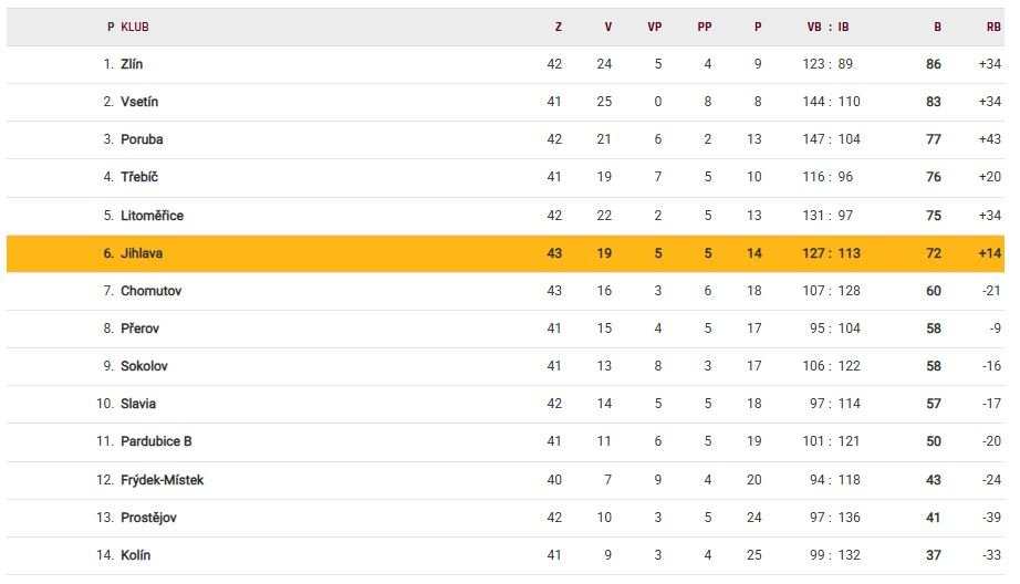26. kolo, čtvrtek 6. února: SK Horácká Slavia Třebíč – HC ZUBR Přerov (18:00)