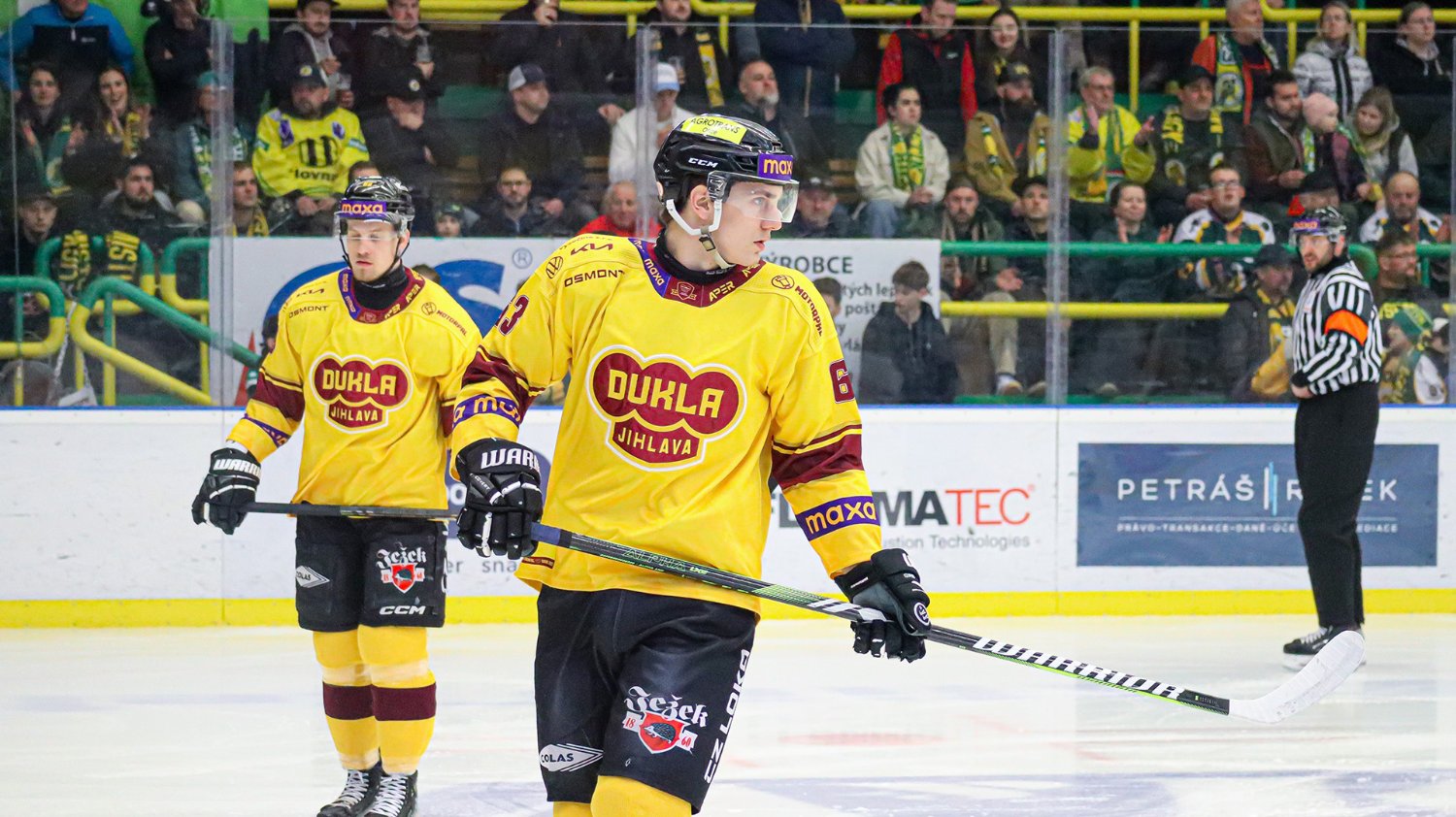 Poslední kompletní sezona Dukly v azylu dopadla pro hráče i fanoušky nejlepším možným způsobem. Během play-off dokázala JIhlava postupně vyřadit Třebíč, Vsetín a Zlín a před vlastním publikem v Pelhřimově oslavila po třech letech zisk titulu pro mistra Maxa ligy, již pátého v historii samostatné české druhé nejvyšší soutěže. Nyní máte možnost získat jedinečnou vzpomínku na úspěšnou sezonu, až do neděle 18. května do 20:00 si můžete vydražit hraný dres Dukly z mistrovské sezony ve žluté variantě, v případě kapitána Dukly Tomáše Čachotského se draží dres v bordó variantě. Dražba probíhá na webu sportovniaukce.cz, do dražby se dostanete kliknutím na tento odkaz. Vyvolávací cena všech dresů činí 2900 korun. Neváhejte a vydražte si dres svého oblíbeného hráče!