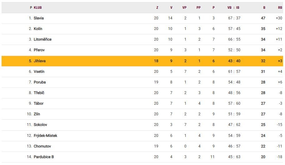 Tabulka Maxa ligy po 20. kole