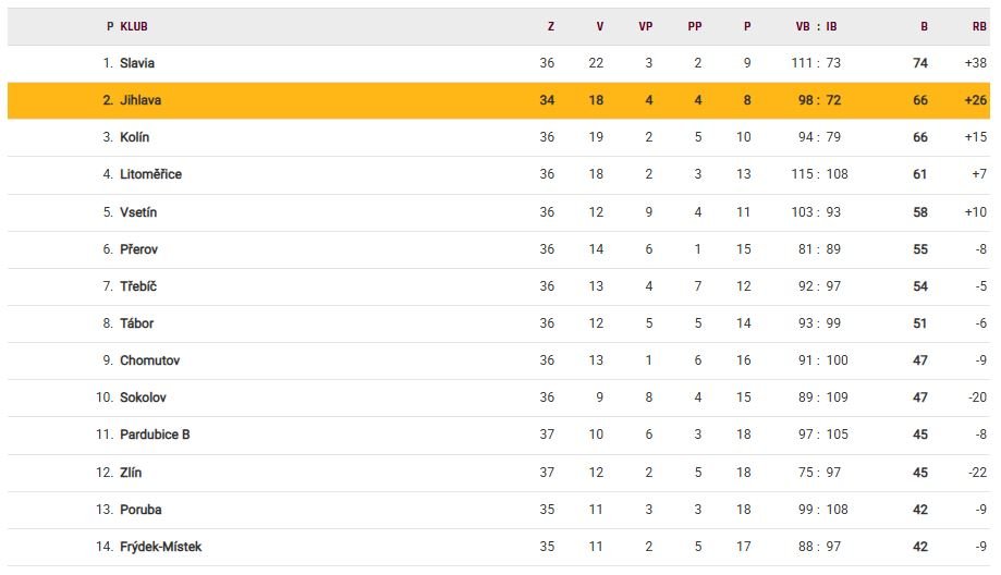 Tabulka Maxa ligy po 37. kole
