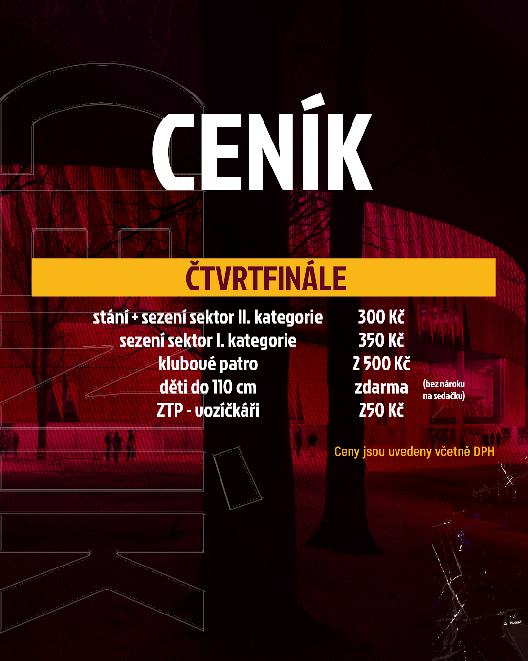 Na základě podnětů od fanoušků jsme přistoupili k úpravě ceny vstupenek na stání. Nově jsou ceny vstupenek na stání nastaveny tak, aby odpovídaly ceně vstupenek na sezení II. kategorie.