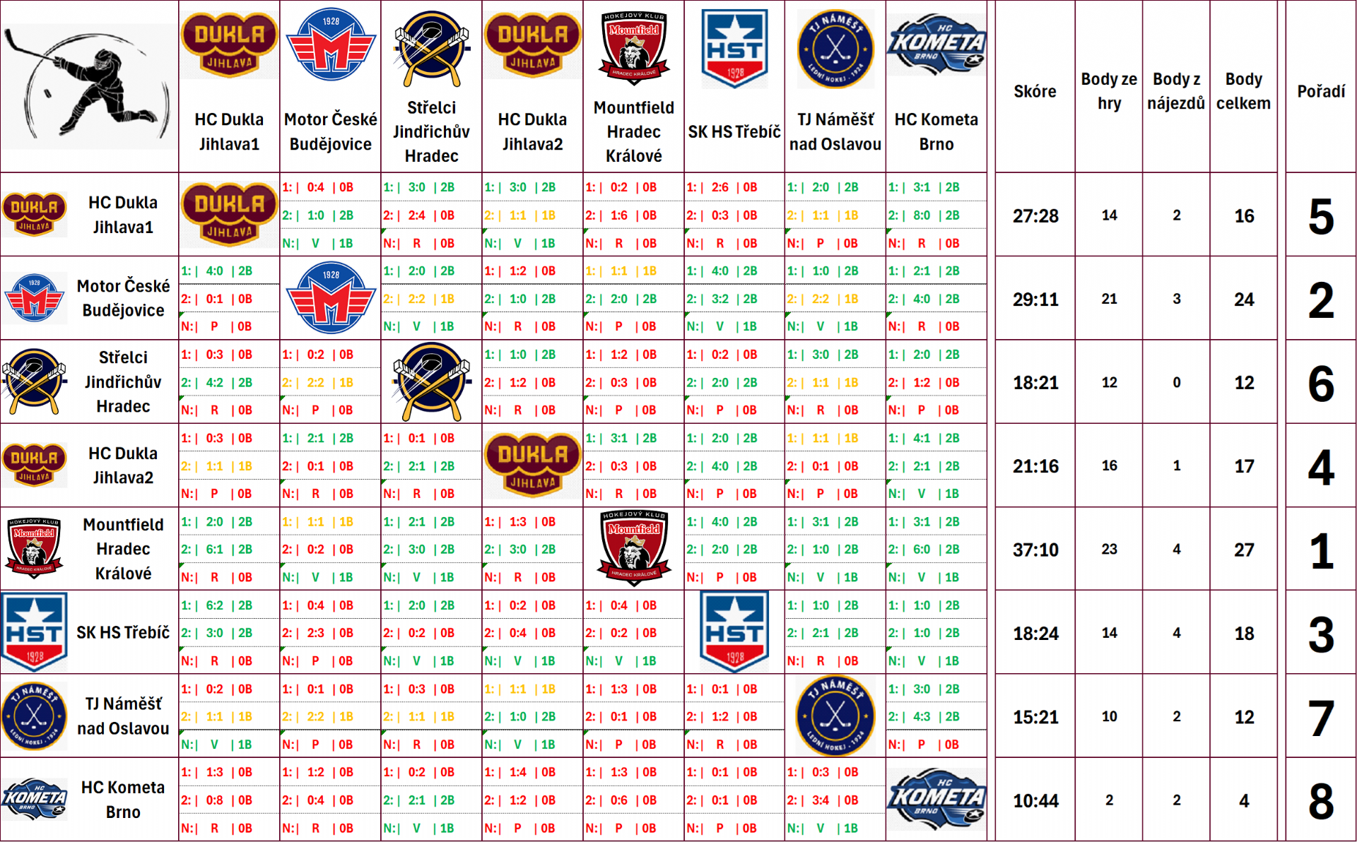 Výsledky Dukly Jihlava - červený tým