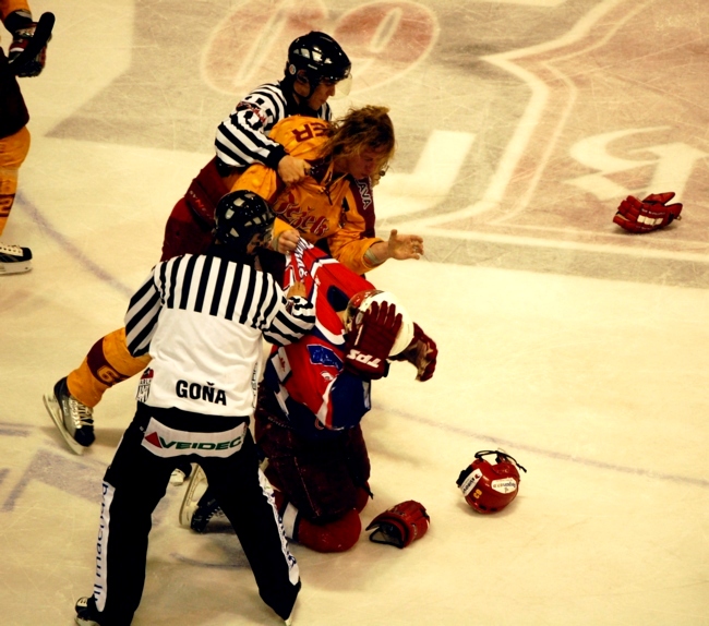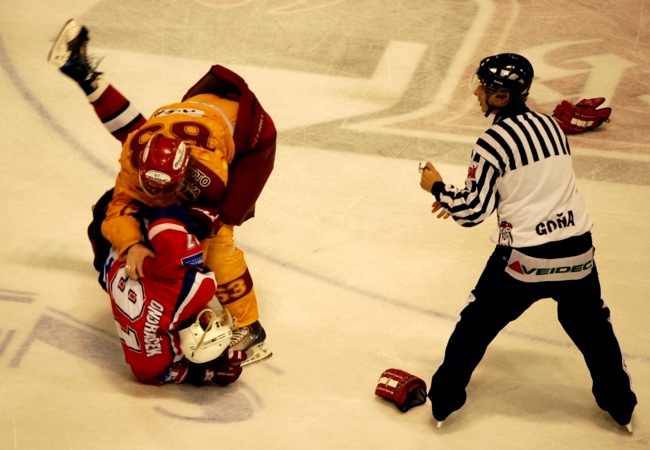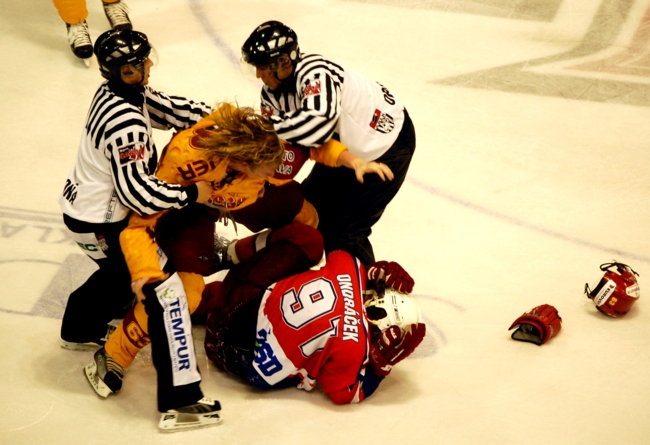 Do brodského forvarda se pustil hlava nehlava a brzy začal mít viditelnou převahu. Na první pohled to vypadalo, jakoby si snad před utkání pouštěl instruktážní film z boxerského prostředí. „Ne, to vůbec ne,“ odmítal se smíchem podobné úvahy jihlavský hokejista. „Prostě se mi ho povedlo dobře chytit. Myslím, že pro diváky to byla slušná bitka. Navíc jsme vyhráli, takže kompletní spokojenost,“ radoval se.