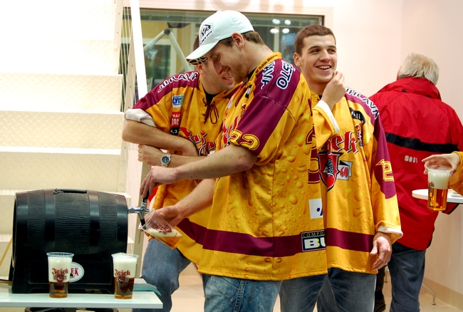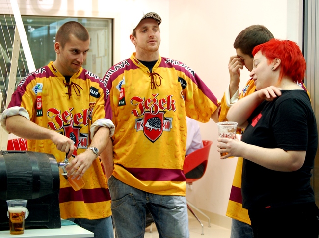 Trojice hráčů jihlavské Dukly točila a rozdávala pivo zdarma v prostorách před Rádiem Jihlava celkem dvě hodiny. Mladí útočníci tak odstartovali pravidelná setkávání hráčů s fanoušky, které na každý čtvrtek připravilo Rádio Jihlava, Dukla Jihlava a Pivovar Ježek.