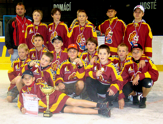 Vítězný tým. Horní řada zleva:trenér František Zeman, Tomáš Mejzlík,, David Váňa, Vladimír Oščádal (za ním schovaný David Čermák), Patrik Indra, Lukáš Anděl. Dolní řada: Pavel Kousal, Jiří Cihlář, Kryštof Chylík, David Šlapáček, Vojtěch Pražák, Gabriel Havelka, Ondřej Najman, Josef Berka, Ladislav Pospíchal, Jakub Škarek (ležící).