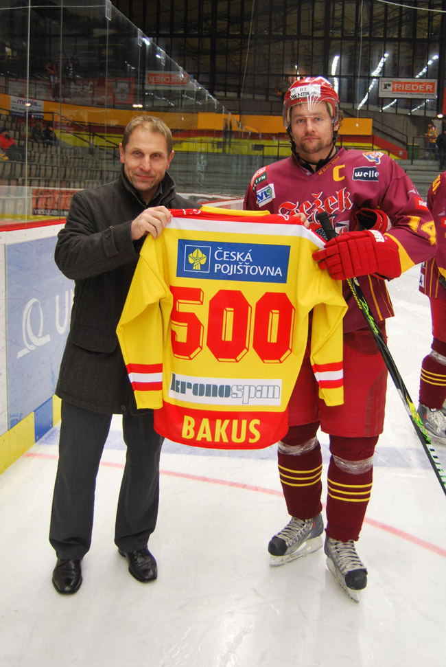 Oldřich Bakus má tedy po dnešním utkání za sebou 500 startů v červenožlutém dresu. Velmi blízko má také k 300. gólu, ke kterému mu chybí pouhých 14 přesných zásahů. Doufejme, že se také pětisté branky dočká co nejdříve. Blahopřejeme a doufáme, že načatá druhá pětistovka zápasů potrvá co nejdéle!