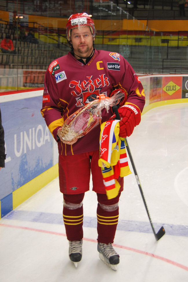To chtěl potvrdit i v dnešním utkání s Kadaní a dát si k jubileu branku jako dárek. Bohužel se mu to nepovedlo. "Soupeř hraje o osmičku, tak přijel především bránit. Nebylo to jednoduché," uznal kvality kadaňských hráčů. "Ve třetí třetině to tam naštěstí napadalo a vyhráli jsme," pravil s úsměvem na tváři.