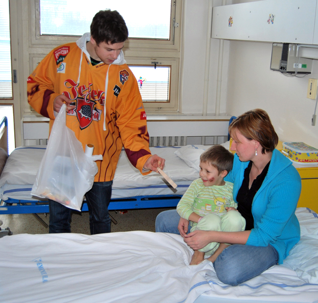 Hráči Dukly vyráží v předvánočním čase za malými pacienty jihlavské nemocnice pravidleně. Zatímco pro mladíky Protasenju se Zemanem to byla premiérová návštěva dětí v nemocnici, Pavel Staněk s Lukášem Krupkou již před Vánoci navštívili nemocné děti potřetí.