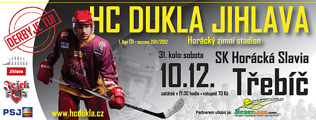 Podle aktuálního postavení obou sobotních soupeřů v tabulce je favoritem třetího derby mezi Jihlavou a Třebíčí domácí tým. I když stará pravda říká, že derby nemá nikdy dopředu favorita... Dukle hraje do karet i fakt, že doma prohrála v normální hrací době pouze jednou (s Ústeckými Lvy 0:2 ve 23. kole - pozn. aut.), další dva body ztratila v derby s Havlíčkovým Brodem, kdy padla až v samostatných nájezdem. Kromě těchto dvou zápasů jsou svěřenci trenérského dua Petr Vlk Patrik Augusta v domácí pevnosti stoprocentní. Třebíč vyhrála venku pouze jednou, dalších sedm zápasů se prodlužovalo.