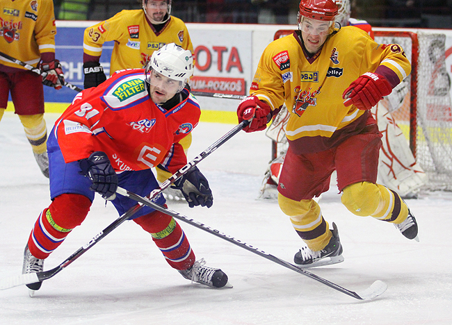 Dukla slavila ve 42. kole tříbodový zisk také. Po bojovném výkonu zdolala Litoměřice 2:1. Vítězství to bylo skutečně utrápené. V podobném duchu se na pozápasové tiskové konferenci vyjádřil také hlavní trenér červenožlutých Petr Vlk. „Zápas jsme nedohráli tak, jak jsme si představovali, ale v situaci, v jaké teď jsme, je takový zápas, který jsme doslova umlátili, vyloženě potřebný. Dnes to nebylo vůbec o kráse.“ Přestože se jihlavským hokejistům již daří sbírat body, herní projev zatím není vůbec ideální. „Pořád máme krizi. Sice už nejsme tak dole, jak jsme byli, ale pořád to není ono. Je to všechno v našich hlavách,“ je si vědom zkušený Daniel Hodek. Že nebude souboj na ledě rivala žádný med, ví také Tomáš Čachotský. „V téhle fázi sezony jde každému týmu o tři body. Týmy bojují o bytí či nebytí v soutěži, samozřejmě hlavně ty na dně tabulky. Zápas v Třebíči nebude vůbec snadný, ale to už teď nebude žádný zápas, protože všichni chtějí urvat body pro sebe,“ přemítá hbitý útočník.