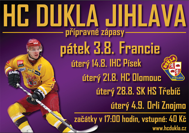 Původně měla Dukla Jihlava zahájit sérii přípravných zápasů v úterý 31. červnece proti Hradci Králové. Tento zápas však byl kvůli problémům hradeckého týmu s vlastní halou zrušen. Premiérově se tak hráči Dukly představí před vlastním publikem až v pátek 3. srpna. A hned na úvod je čeká velice atraktivní soupeř - reprezentace Francie, která svůj přípravný kemp absolvuje již sedmým rokem na severu Moravy.