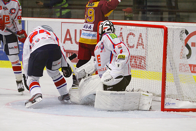 Mužstvo z metropole Vysočiny se střetlo na domácí půdě s Královskými lvy. První dějství branku nepřineslo, třetina následující již ano. Nejprve poslal Duklu do vedení Marek Drtina, poté přidal dva přesné zásahy Daniel Hodek. Zdálo se, že je osud duelu zpečetěn. To byl však velký omyl. V závěru druhé periody vykřesali hradečtí hokejisté naději. Závěrečná třetina pak přinesla ukázkové drama. Na dostřel domácím přiblížil Lvy Vladimír Říha, v početní výhodě poté dokonal vyrovnání Martin Šagát. Střetnutí i přes několik dalších brankových příležitostí dospělo až do prodloužení, ve kterém zajistil domácím bonusový bod Vojtěch Zadražil. „Hradec měl v první třetině dobře pokryté střední pásmo, těžko se procházelo. Za stavu 3:0 přišly tři hloupé fauly, nad tím zůstává rozum stát. Soupeř má velice dobré přesilové hry a dokázal toho využít. Když to řeknu upřímně, tak po tom, co jsme vedli už o tři góly, jsem nazlobený,“ neskrýval na pozápasové tiskové konferenci negativní emoce Petr Vlk.