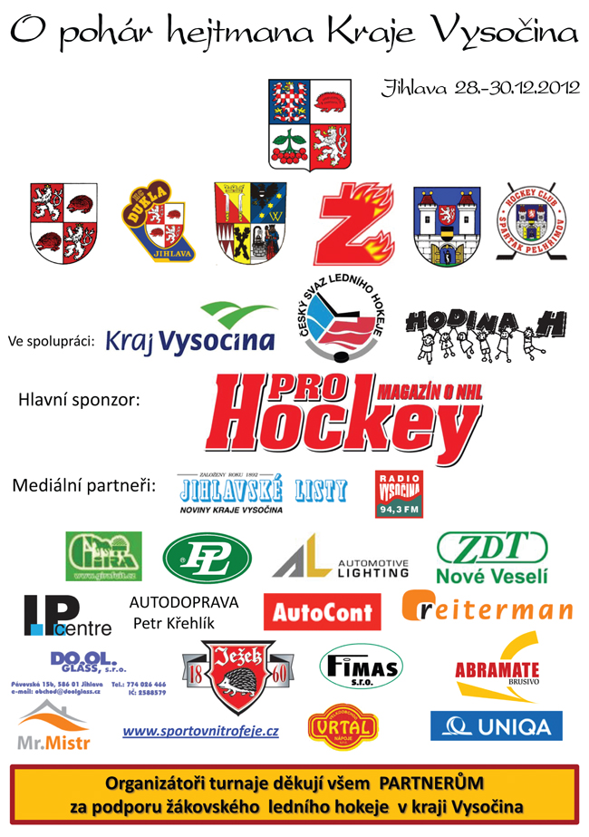 Tradičního vánočního Turnaje o pohár hejtmana Kraje Vysočina se letos účastní patnáct týmů z celé České republiky (včetně dvou ze Slovenska). Hraje se na třech stadionech v Jihlavě, Žďáru nad Sázavou a Pelhřimově. Po odehrání základních skupin (v pátek 28. prosince a v sobotu 29. prosince) dojde v neděli 30. prosince k velkému stěhování. Týmy, které se umístí ve skupinách na prvním a druhém místě, budou hrát finálovou skupinu v Jihlavě, ty, jenž skončí na třetích a čtvrtých místech, se přesunou do Žďáru nad Sázavou, týmy na pátých místech odehrají závěrečnou skupinu v Pelhřimově.