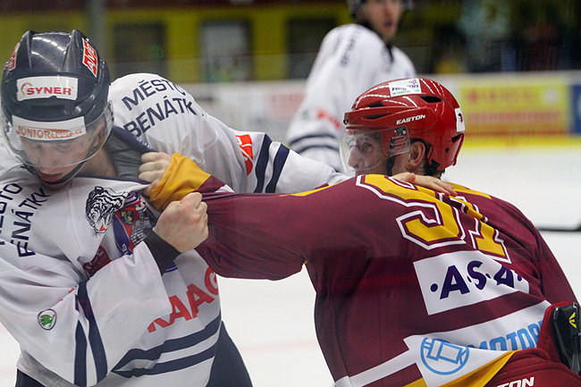 Odvetné klání vyznělo lépe pro benáteckou družinu. První třetina změnu skóre nepřinesla, ve dvacetiminutovce následující zajistil domácím vedení Jan Jaroměřský. Poté ale přišly chvíle Adama Zemana. Mladý útočník dvěma přesnými zásahy zvrátil nepříznivý vývoj utkání. Totéž se ale podařilo v divokém závěru druhé části rovněž Benátkám. Ve třetí periodě nastalo opět ticho po bouři, síť nerozvlnil ani jeden z celků. Severočeši si tak připsali tři body za výhru 3:2.