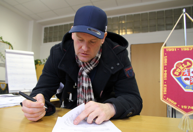 Smlouvu s Duklou podepsal druhý lednový den nového roku 2014 a už se pustil do práce. „Začínáme hned zítra (v pátek 3. ledna 2014 - pozn. aut.) ráno, kdy jdeme s gólmany ve tři čtvrtě na devět do posilovny. Pak máme krátké rozchytání a začně klasický trénink A-týmu," prozrazuje nebližší program. „Od příštího týdne toho mají kluci se mnou naplánovaného samozřejmě víc," usmívá se Petr Jaroš.