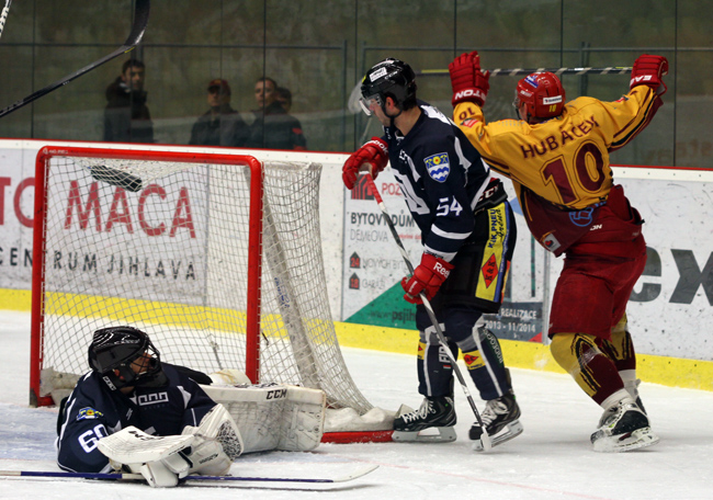 GÓLOVÁ RADOST! Poslední utkání mezi Duklou a Havířovem vyznělo lépe pro jihlavský celek, k čemuž přispěl svou trefou i hbitý forvard Radek Hubáček. Foto: Josef Plechatý