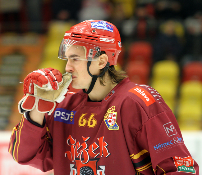 Z JIHLAVY DO ŠUMPERKA. Michal Velecký bude v příští sezoně hájit barvy Šumperka. V historických tabulkách Draků drží druhé místo v počtu nastřílených gólů během sezony. V sezoně 2010/2011, kdy Šumperk postupoval zpět do první ligy, skóroval dvaatřicetkrát. Foto: Josef Plechatý