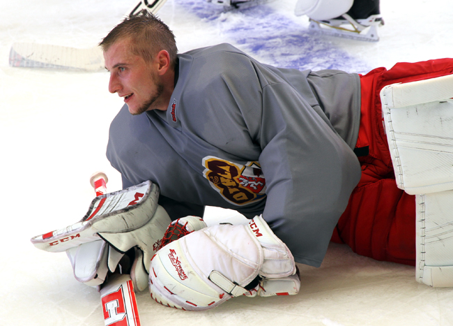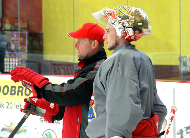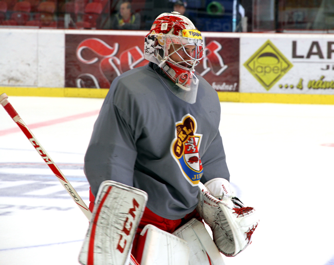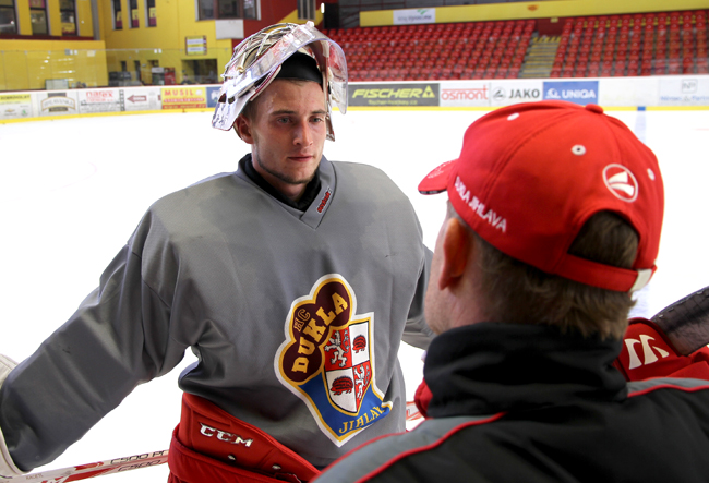 PRVNÍ TRÉNINK S DUKLOU. Gólman Ondřej Kacetl se hlásil trenérům Dukly Jihlava v kabině v pondělí před osmou hodinou ranní. S A-týmem poté absolvoval první trénink. Foto: Zdeněk Drla