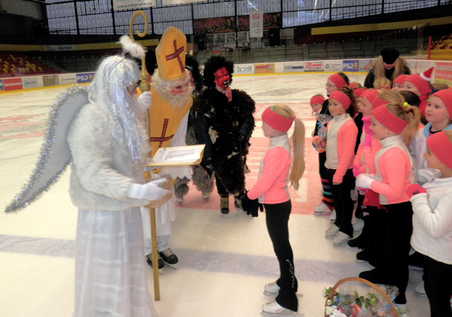 V pátek, kdy chodili čerti, se na Horáckém zimním stadionu objevila pekelná parta s Mikulášem a krásným andělem. Gemini se musely vyzpovídat a předvést se v nejlepším světle, aby je čerti nevzali s sebou. Dostaly milé dárečky a nazdobily vánoční stromeček na zimáčku, tradičně vyrobenými ozdobami na motivy bruslení a ducha týmu.