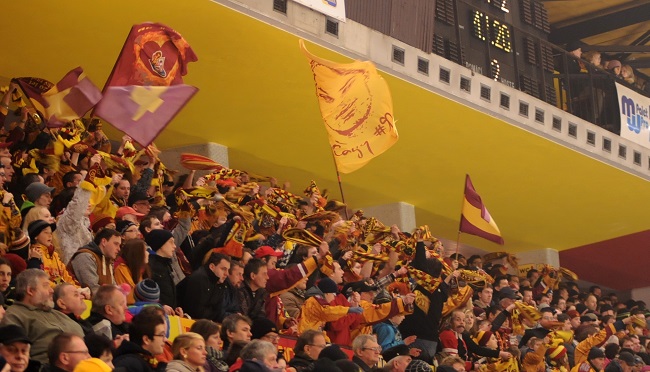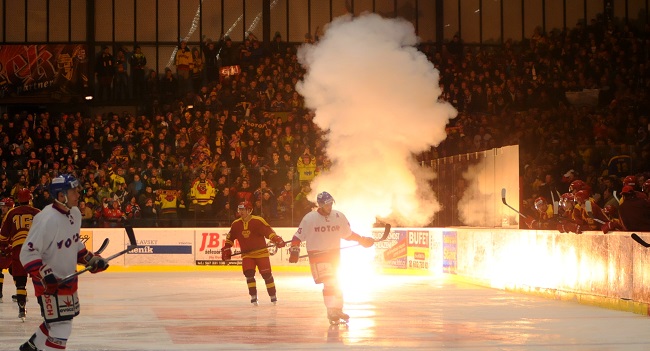 To, že půjde o pikantní duel nejen na ledě, ale i v hledišti, se dalo poznat již při předzápasovém rozbruslení obou celků, když se oba tábory fanoušků navzájem hecovaly a přeřvávaly. Těsně před samotným začátkem utkání se domácí kotel prezentoval vydařeným choreem v podobě dvanácti dosud vybojovaných titulů a triumfů ve Spengler Cupu.